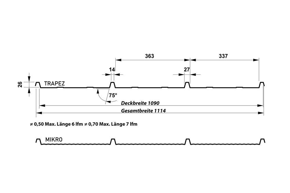Stahlkern 0,50mm 4,36 kg /m2, Stahlkern 0,63mm 5,73 kg /m2, Stahlkern 0,70mm 6,42 kg /m2